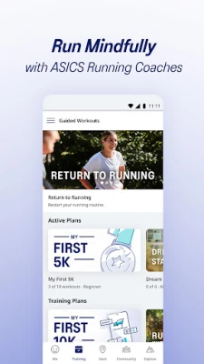 • Guided Workouts: Let our ASICS Runkeeper coaches motivate you through audio-guided workouts for everything from your first 5K to interval training to mindfulness runs.