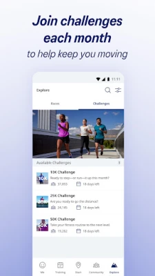 • Running Groups: Create a custom challenge, invite friends, track each other’s progress, and use the chat to cheer each other on.