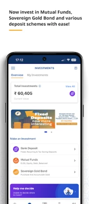 Investments: Using the app, you can now invest in Mutual Funds, Gold and Bank’s various deposit schemes. The “Help Me decide” feature in the app will guide you to the most suitable investment option among all the options.