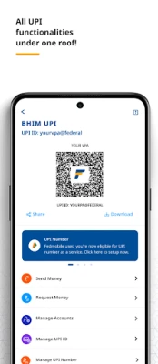 This revamped version of FedMobile– Federal Bank’s highly popular mobile banking application - comes with more user-friendly and advanced features than its predecessor, ensuring a richer and more pleasant experience for its users. We have combined Mobile Banking, FedBook and BHIM UPI into a single application plus a whole host of new features and services to make it a one stop shop for all your banking needs.