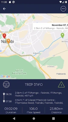 - View your trip history in a trip directory - Keep track of distance travelled on a graphical dashboard - View Driver Scores and Driver Behaviour feedback - Route to your vehicle