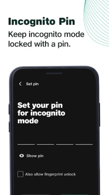4) Incognito Mode with a pin: The incognito mode doesn’t store your browsing history. Additionally, you can lock your open tabs in the incognito mode with a password. Your tabs are now safe and private! You can now also save private bookmark here.