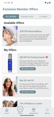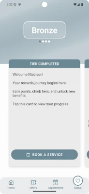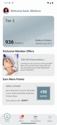 Rewards and Loyalty Status are viewed and tracked within the Model Rewards app. Patients can view the number of points they have accumulated as well as track their progress towards their next Loyalty Status. Furthermore, patients can view the prizes they may be eligible for by achieving each respective Loyalty Status.