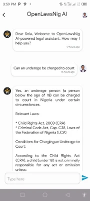 OpenLawsNig is an AI-powered legal assistant app designed to promote access to justice by providing easy access to legal information and laws in Nigeria. The app also aims to educate Nigerians on their rights and obligations under the law, thereby promoting civic engagement.