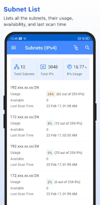 List all the IP addresses in your network with detailed insights on IP availability, associated MAC addresses, user, location and more.