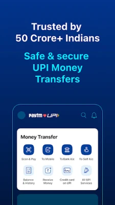 ● Paytm UPI - Send and receive money using just a mobile number. Scan any QR code, pay at shops, and more.