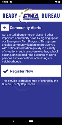 Ready Bureau is the official app of the Bureau County Emergency Management Agency. We are charged with planning for, coordinating, responding to and recovering from all disasters, natural or man-made. This app will send you important safety alerts and provide instant access to safety resources. Ready Bureau benefits include: