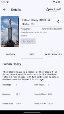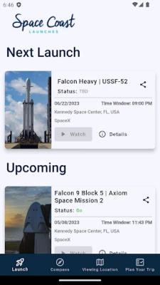 - Receive notifications for upcoming launches 24 hours and 5 minutes before countdown.