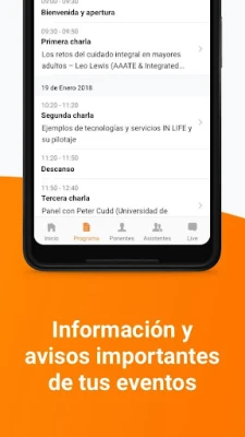 Estarás en todo momento al tanto de las últimas novedades de tus eventos y podrás relacionarte tanto con la organización como con el resto de asistentes.