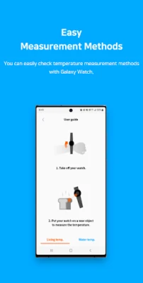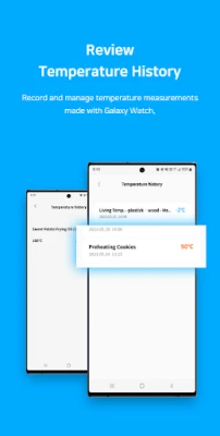 Connect your Samsung Galaxy Watch 5 (or higher model) with "Thermo Check" and measure temperatures using your Wear OS smartwatch, then record them on your mobile device.